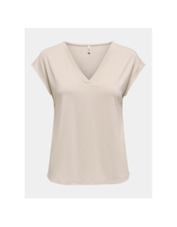 T-shirt regular col v free life beige femme - Only T-shirt regular col v free life beige femme - Only
